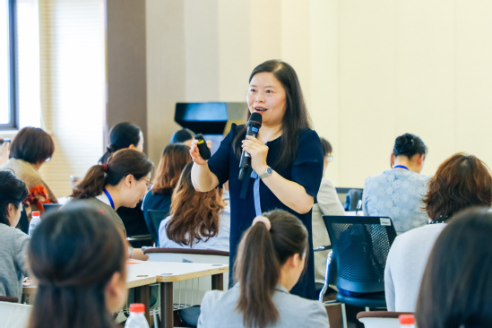 上海师范大学天华学院学前教育学院院长滕薇和嘉定区双丁路幼儿园潘晓敏园长共同为园长们带来了一场生动有趣的绘本工作坊:《读懂幼儿、玩转绘本——绘本在幼儿园课程中的应用》。工作坊分“我来读,你来议”、“我来讲,你们评”、“你们读、我来听”三个环节,从我们都是读者、我们都是老师、我们是阅读伙伴三个角度引导园长们如何读透玩转绘本,促进了园长们互动与沟通的同时,也使园长们对早期绘本阅读有了更加深刻的思考与感悟。
