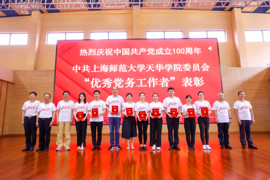 下午的表彰大会上,党委副书记、校长叶才福宣读了《中共上海师范大学天华学院委员会关于“优秀共产党员、优秀党务工作者和先进基层党组织”的表彰决定》,授予邵海波、程葆青等49位同志“优秀共产党员”荣誉称号,授予江芳、聂晓晶等37位同志“优秀党务工作者”荣誉称号,授予马克思主义学院党支部、小学教育专业党支部等16个组织“先进基层党组织”荣誉称号。党委书记陆建非、校长叶才福、党委副书记曹云林、副校长陈新斌、副校长吴国兴共同为获奖单位和个人颁发荣誉证书和奖牌,进一步弘扬先进,树立标杆。