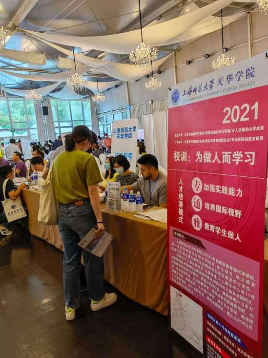 2021年6月26日周六上午9:00,我校参加“2021年上海市普通高校本科招生见面会”,招生办、学前教育学院、初等教育学院、艺术设计学院、商学院的多位老师参加,为考生和家长提供高考招生咨询服务。