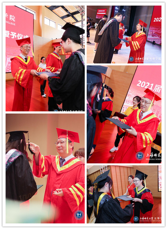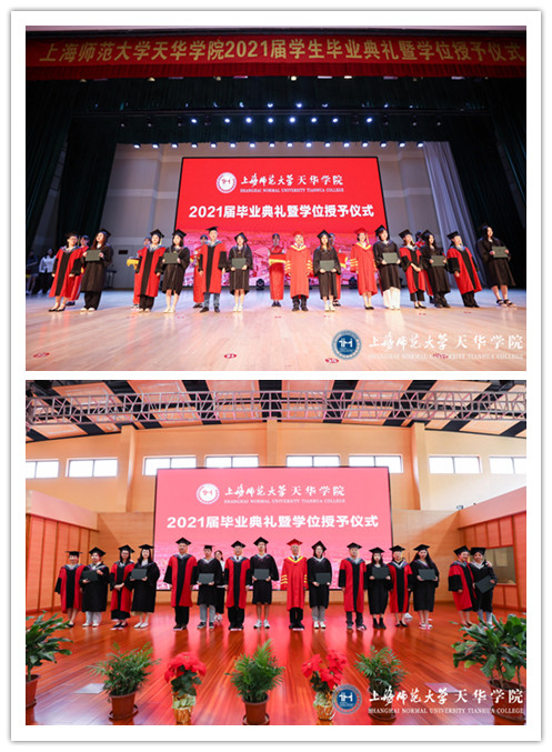 出席学位颁发仪式的领导们宣读了《关于公布和表彰2021届上海市高等学校优秀毕业生的决定》、《关于表彰2021届天华学院优秀毕业生的决定》与《关于表彰2021届优秀毕业生党员的决定》,我校共有116名同学被评为上海市高等学校优秀毕业生、234名同学被评为上海师范大学天华学院优秀毕业生、17名同志评为上海师范大学天华学院“优秀毕业生党员”。