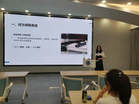 接下来,健康学院徐欣老师为大家带来了《人体运动学》专业课课程思政教学方面的设计新思路,用自身宝贵的课程思政教学经验,为大家解读了何为课程思政、课程思政的教学目标以及课程中知识单元模块与思政元素之间的设计,并提出在课程之后的教学反思中更应学习如何提高教师思政素养,做到以身作则为学生树立良好榜样的思想要求。
