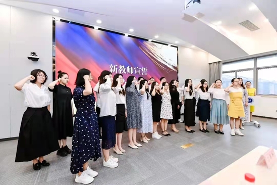 最后,在学校第37个教师节表彰大会上,全体新教师在校领导面前庄严宣誓,为人师表,修身立德,为科教兴国、民族复兴、天华未来贡献自己的一份力量!