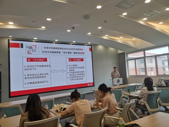 郑宁副处长就科研项目的申报问题,向各位新教师详细讲解了上海师范大学天华学院的科研简况、项目申报的类型及流程、项目申报的具体管理以及成果奖励制度,热情鼓励大家多申报课题,多做科研项目,希望大家在教学之余继续自己的研究项目并取得丰硕的科研成果。