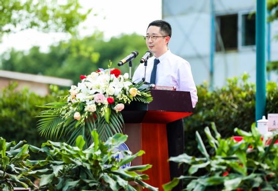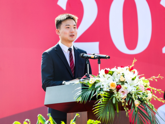 教师代表,通识学院副院长聂晓晶以“台风”、“双减”等热点话题展开,贴合新生们的成长轨迹,拉近了与新生的距离。他向新生们提出,在大学期间能够抵御不良诱惑,在信息时代坚持自我,利用好工具发展自我。除了学科知识和技能外,新一代人还需要拥有独立思考和仁爱之心。希望在这四年中,同学们能够学会热爱,坚守自我,做一个儒雅人。