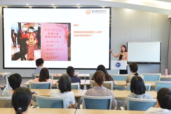 然后,谭律师分别从生活中的子女监护抚养、婚姻财产分配、个人财产继承三个典型事例引入,运用简洁精练的语言,以案释法,详细讲解了民法典对子女抚养、婚姻家庭、财产继承的重大影响,阐明了这三个案例在民法典中涉及的相关新法规和实际运用。