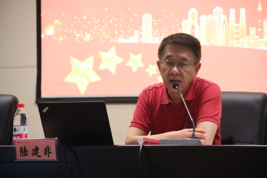 陆建非教授主要兼职为中国跨文化交际研究会上海分会会长、中国陶行知研究会副会长兼高等院校工作委员会主任、上海市欧美同学会常务副会长兼留美分会会长、上海市陶行知研究协会副会长、上海师大陶行知研究中心主任、非物质文化遗产传承研究中心主任、《非遗传承研究》主编等。正值建党百年之际,陆书记深刻思考外语学习教育如何助力党的诞生与发展,结合外语学习与党的百年历程给在座师生带来了一场精彩的红色讲座。