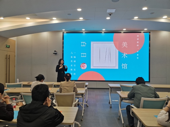 李菁雯博士以工作坊形式进行分享。工作坊从意大利著名“极少主义”艺术家丰塔纳的一幅“奇怪”的“刀割画”作品出发,一起解锁了作品背后的故事,了解了引导儿童欣赏艺术作品的五个小贴士,探索了在美术馆和博物馆里开展儿童美术教育的可能性,并创作了一幅属于每个人自己的风格化大师作品。其实,发生在美术馆里的儿童美术教育形式还有很多,让孩子们做个“白日梦”的无限可能性等待着你我的脑洞和实践。
