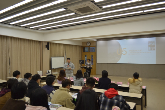 会议第三项,2021级财务管理(国际课程合作)1班学生卢佳骏作为代表发言。他对学校和专业老师表达诚挚的谢意,并对未来的学习和生活充满信任,并表达了对未来大学四年学习生活的期待。