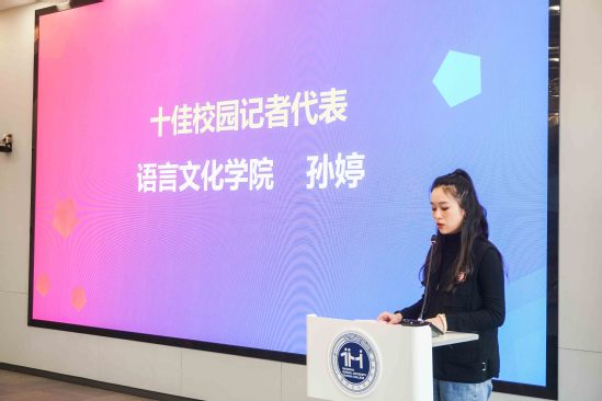校大学生记者团团长孙婷作为十佳校园记者代表分享了她在记者团的成长经历,并针对记者团与官微的运行进行简要说明,讲述了2021年记者团在学校栏目上的创新以及视频号从零到一的突破。她指出,十佳记者是校园记者的标杆,一定要起到引领与带头作用,助力校园宣传工作。