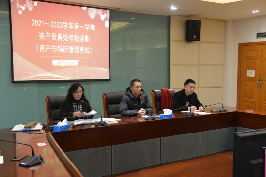 2022年1月4日和1月5日,资产设备处组织开展学期考核述职,资产设备处处长朱清,副处长董海霞、周建文全程参与并组织了考核。考核述职按照图书馆、车队、资产与场所管理三个条线分别组织实施。