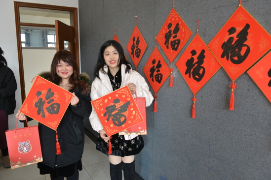 为弘扬中华优秀传统文化,丰富教职工校园文化氛围,1月7日,由校工会开展的“墨香迎新春”赠福字活动在月华楼471国画教室举行。副校长龚春蕾、校党委副书记许岳和校工会常务副主席曹卫参加活动为教职工献福。