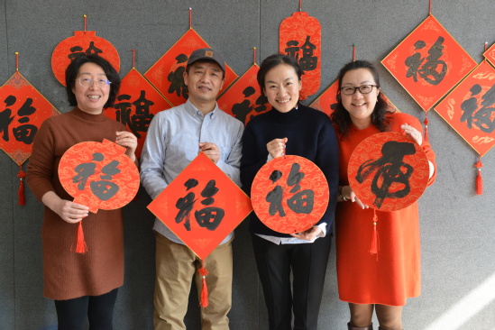 一张张墨迹未干的福字被在旁静观等候的老师们依依选中挑走,一个个笑脸伴随笔墨飞扬。大家纷纷表示,亲笔手写的福字比在外购买的更加有意义,既是对即将过去的一年最好的总结,也是对未来一年发展的美好期盼。最后,老师们提着心仪的福字合影留念。