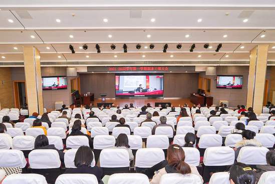 1月14日上午,学校举行2021-2022学年第一学期期末干部大会,回顾总结学校本学期各方面工作的开展情况与取得的成绩,凝聚人心,鼓舞士气,同时寻找短板和不足,保障学校健康长远发展。学校执行董事长石伟平、党委书记陆建非、校长叶才福、总校监郭伟奇、监事长韩晓玉等领导出席会议,全体助理级以上干部参加会议。会议由执行董事长石伟平主持。