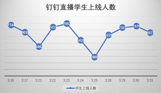 3月,钉钉直播教学,每天上线累计人次数均在5000-7000左右,基本保持稳定。其中,3月21日和3月24日因安排核酸检测,部分课程由直播教学改为录播教学,上线人数有所降低。总体上说,我校教师在线教学和学生在线学习已进入常态化,在线教学整体运行良好。