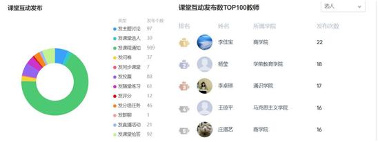 3月14日实施在线教学以来,全校教师新增学习任务点8283个,发布课堂活动2216次,发起讨论1865次,发布作业4148次;学生完成学习任务点490355个,参与课堂活动69792人次,参与讨论28292人次,提交作业59764人次。