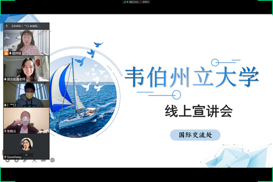 上海师范大学天华学院高度重视国际合作,把深度国际交流作为全面提升学校品牌和竞争力、提高学生综合能力和就业竞争力的重大战略决策。为进一步做好有关教育学硕士项目的宣传工作,为学生提供全面详实的出国项目介绍及答疑,使有意向的同学深入了解该项目情况以及修读课程与生活的情况,国际交流处于3月20日举办了2022年美国韦伯州立大学教育学硕士项目线上宣讲会。参加此次宣讲会的有国际交流处副处长夏智源,国际交流处教师赵诗佳,目前在美留学的教师代表张枫云和学生代表沈葆唯以及对2022年项目感兴趣的同学们。本次宣讲会由国际交流处教师赵诗佳主持。