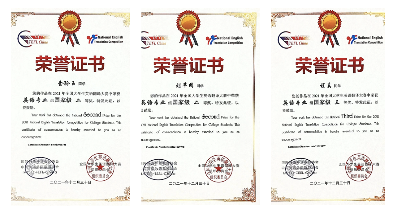本次大赛由国际英语外语教师协会中国英语外语教师协会主办,吸引了2034所高校4万多名学生报名参赛,覆盖清华大学、北京大学、上海交通大学、复旦大学等39所985高校和112所211高校,比赛覆盖率达97%。此次比赛经过专家组老师的严格评阅,国家级一、二等奖的获奖比例仅为参赛人数的3.8%。具体获奖名单如下: