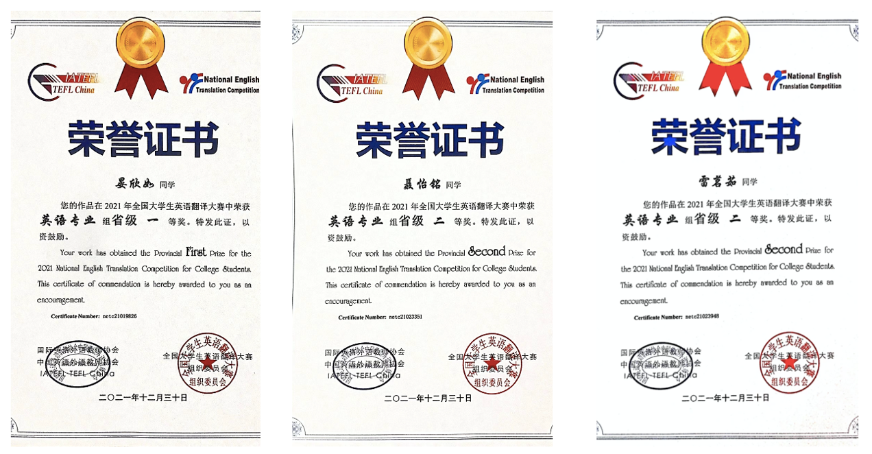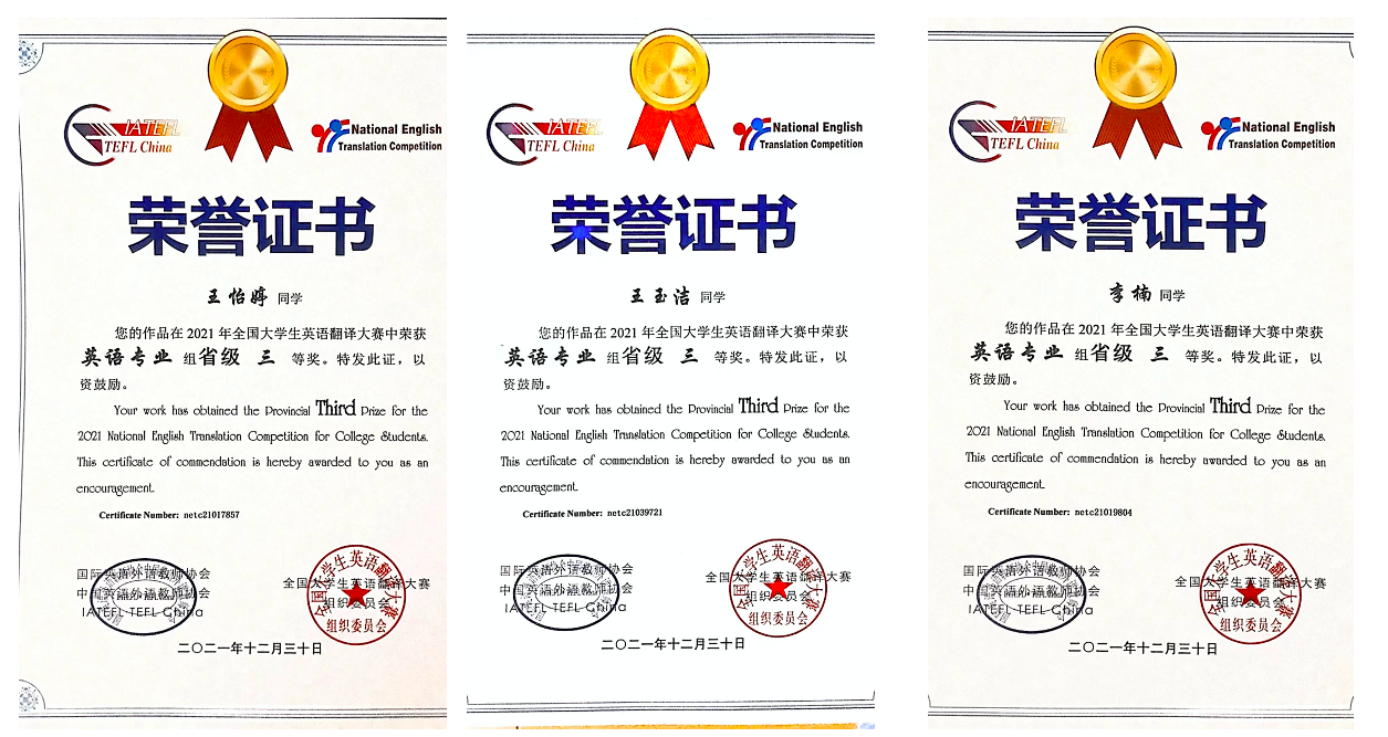 全国大学生英语翻译大赛(NETC)于2022年3月落下帷幕。由我校初等教育学院卜迅老师指导的9位学子在此次大赛中斩获多个奖项,其中包括国家级二等奖2人、三等奖1人,省级一等奖1人、二等奖2人、三等奖3人。