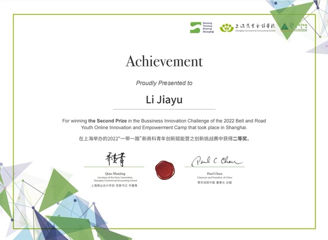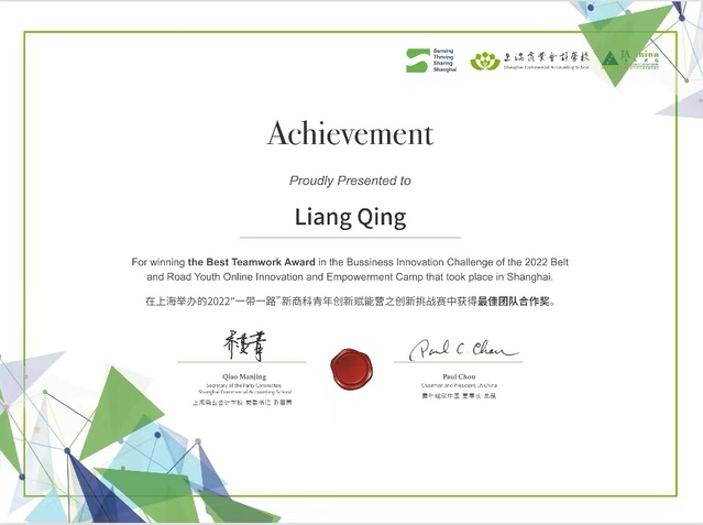 2022年8月,为期一个半月的2022“一带一路”新商科青年创新赋能营之创新挑战赛在沪顺利闭幕。本次大赛中,由上海师范大学天华学院物流管理教研室杜鑫可老师带领的3名天华商院学子荣获二等奖和最佳团队合作奖各一项的好成绩。