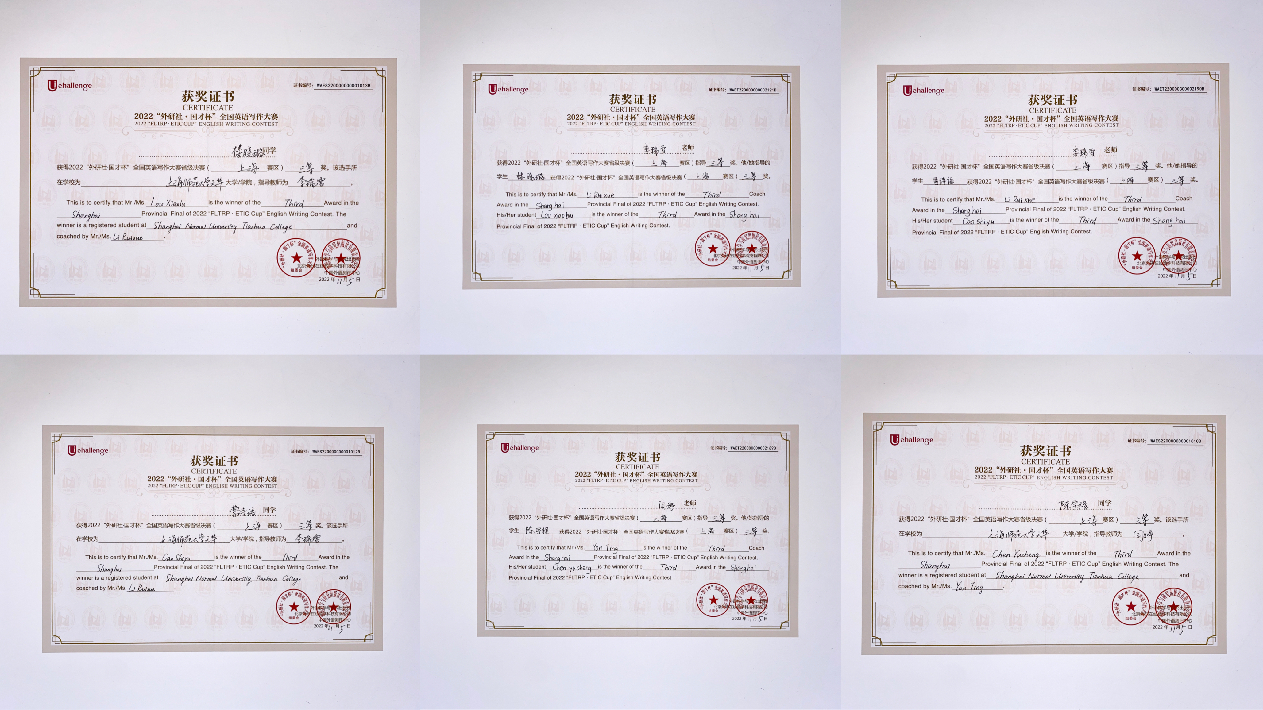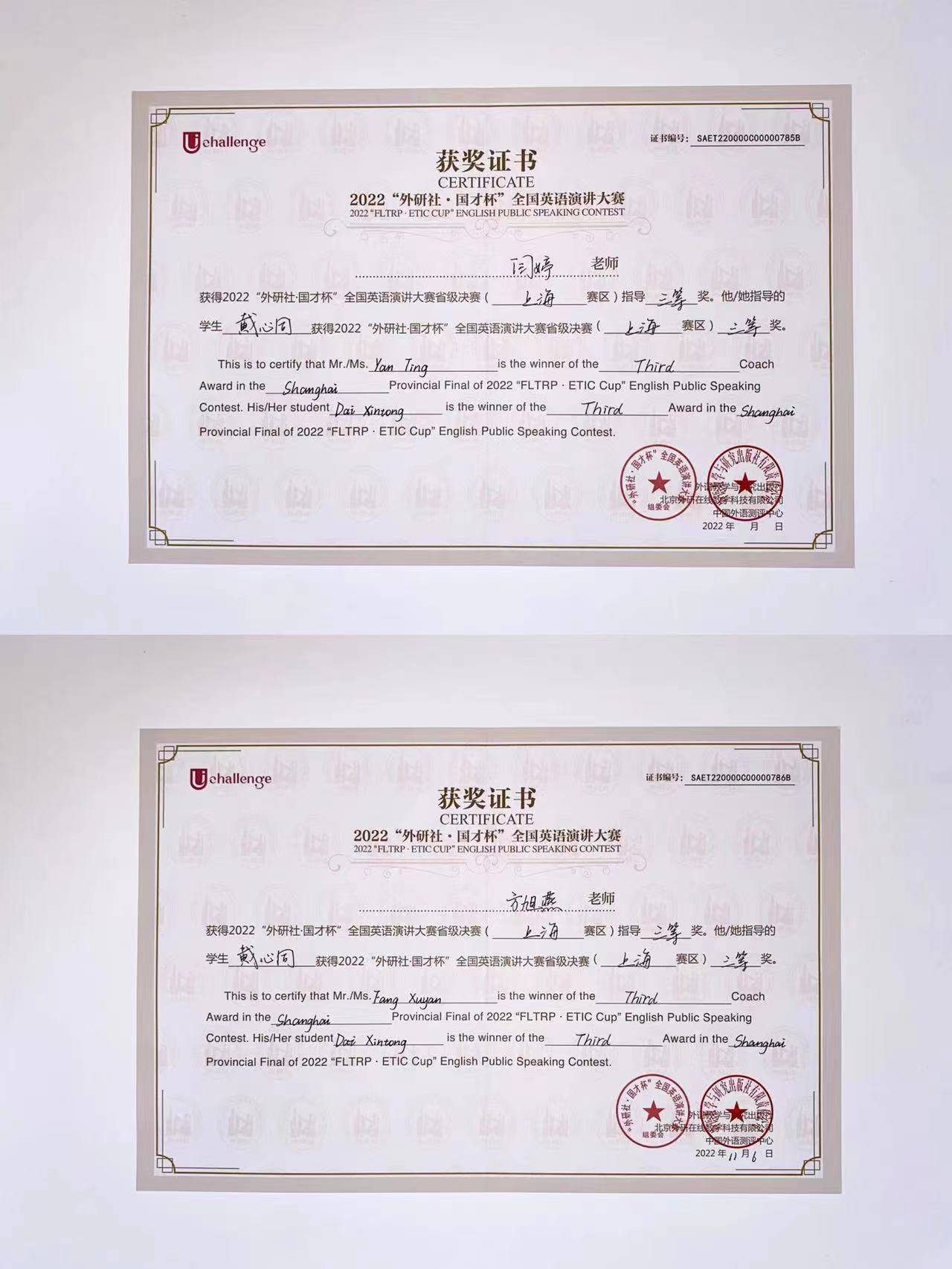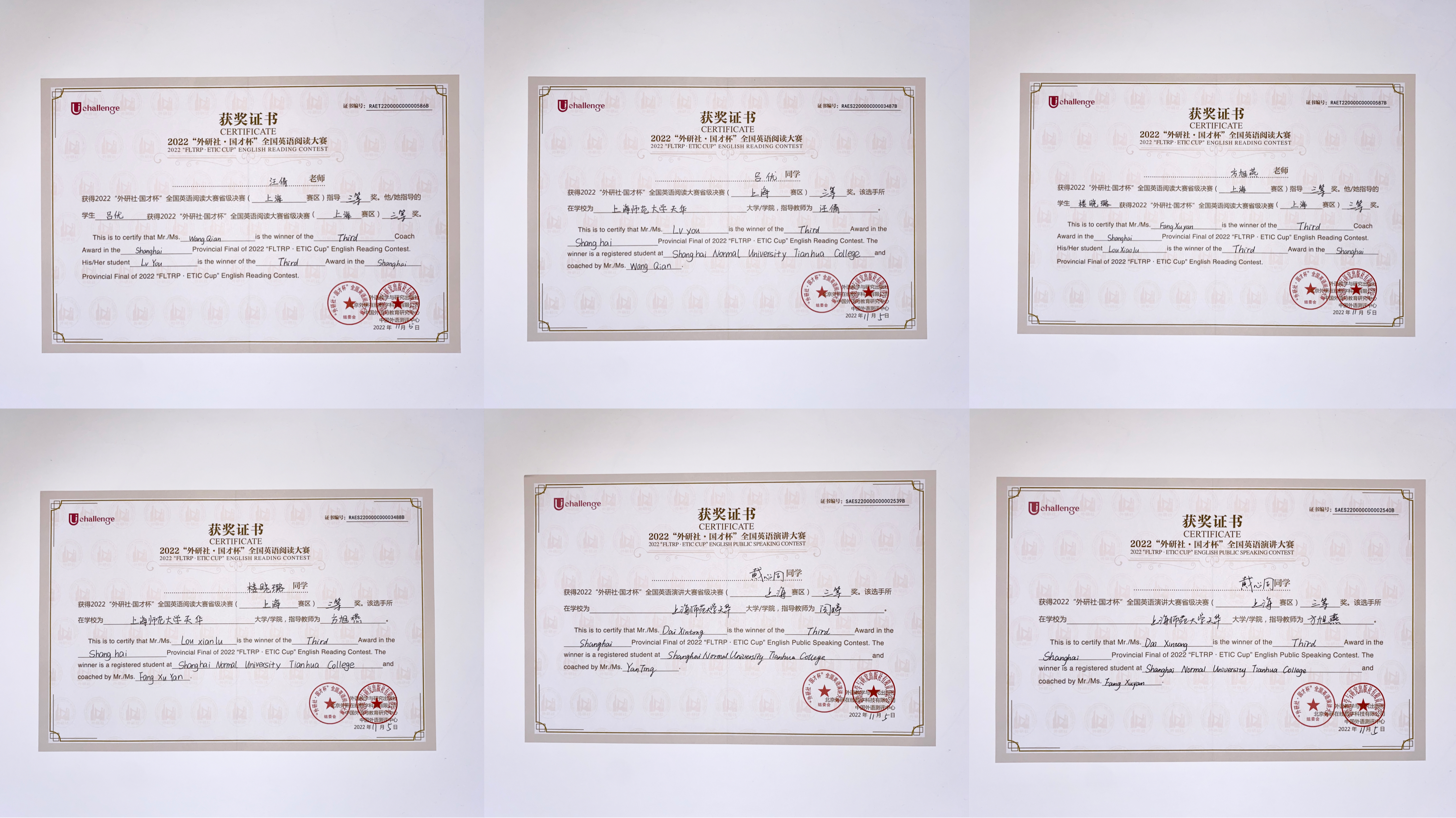 青春逢盛世,奋斗正当时。当怀鸿鹄志,驰骋展英姿。2022年11月5-6日,2022年外研社“国才杯大学生英语挑战赛”(上海赛区)决赛拉开帷幕,其中阅读比赛和写作比赛于线上进行,演讲比赛则于线下进行,并由承办方同步直播。天华学子与交大、复旦、同济、财大、上外等31所高校的学生同台竞技,一决高下,最终喜获佳绩,斩获8个三等奖。
