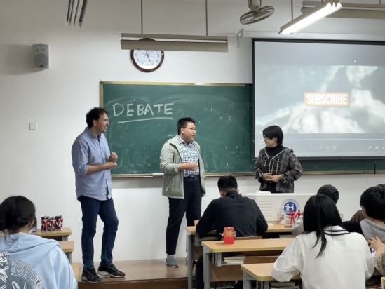 (英国外教Paul指导学生进行“超级英雄辩论”)
