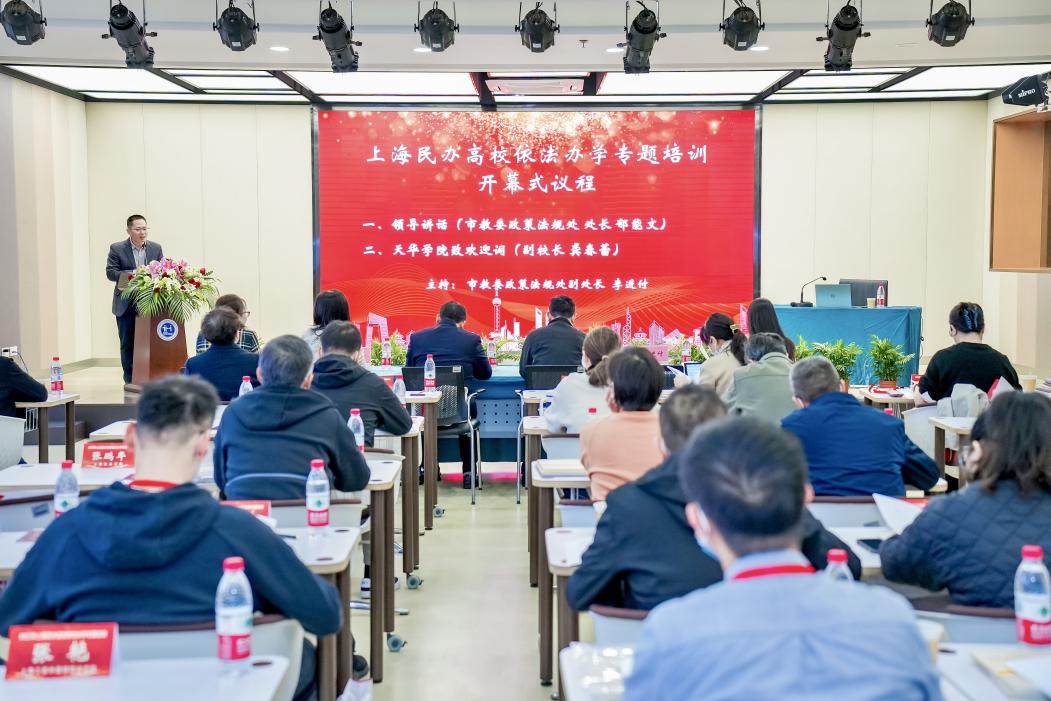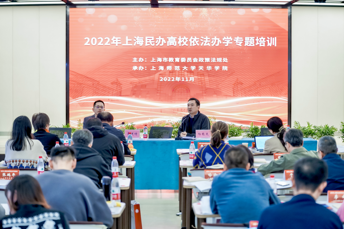 本次专题培训会旨在落实党的二十大精神、推进民办高等学校现代大学制度建设,进一步加强民办高等学校章程建设,全面促进依法治教、依法办学、依法治校,持续提升本市民办高校依法办学水平。本次依法办学专题培训由上海市教委政策法规处主办,上海师范大学天华学院承办。