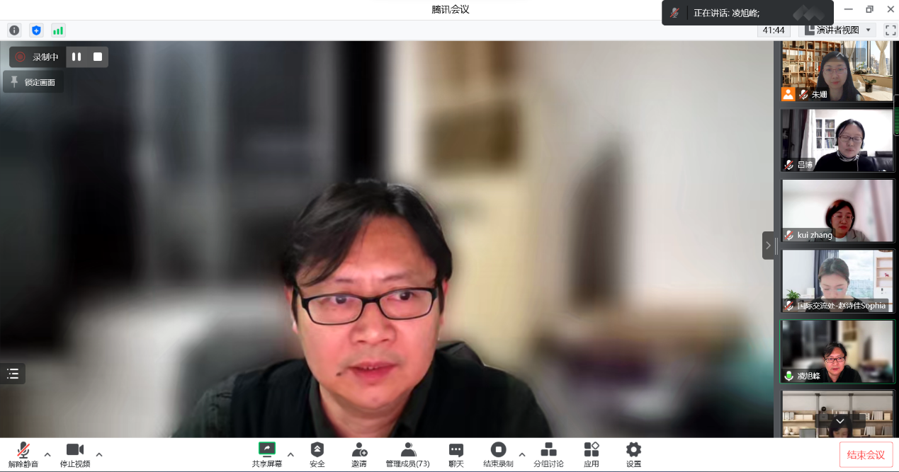 首先,凌旭峰院长代表学院致辞。他强调本年度为人工智能学院与University of Hertfordshire(UH)工程学院的第二轮合作,前期双方合作顺利,已经打下了良好坚实的合作基础,也已经有同学前往UH攻读本科最后一年。相信我们的第二轮合作,一定可以取得更加丰硕的成果。随后,凌院长为同学们简述了国际合作项目优势,并表示学院为电子信息工程与通信工程两个专业配置了优秀的师资团队和高端的实践教学条件,并且肯定了同学们一直以来的优异表现。最后,凌院长表示希望同学们要逐渐培养国际视野与全球化格局,鼓励师生克服疫情所带来时差、地域阻碍,做好教学工作,最后希望同学们早做规划,不虚度大学四年光阴。
