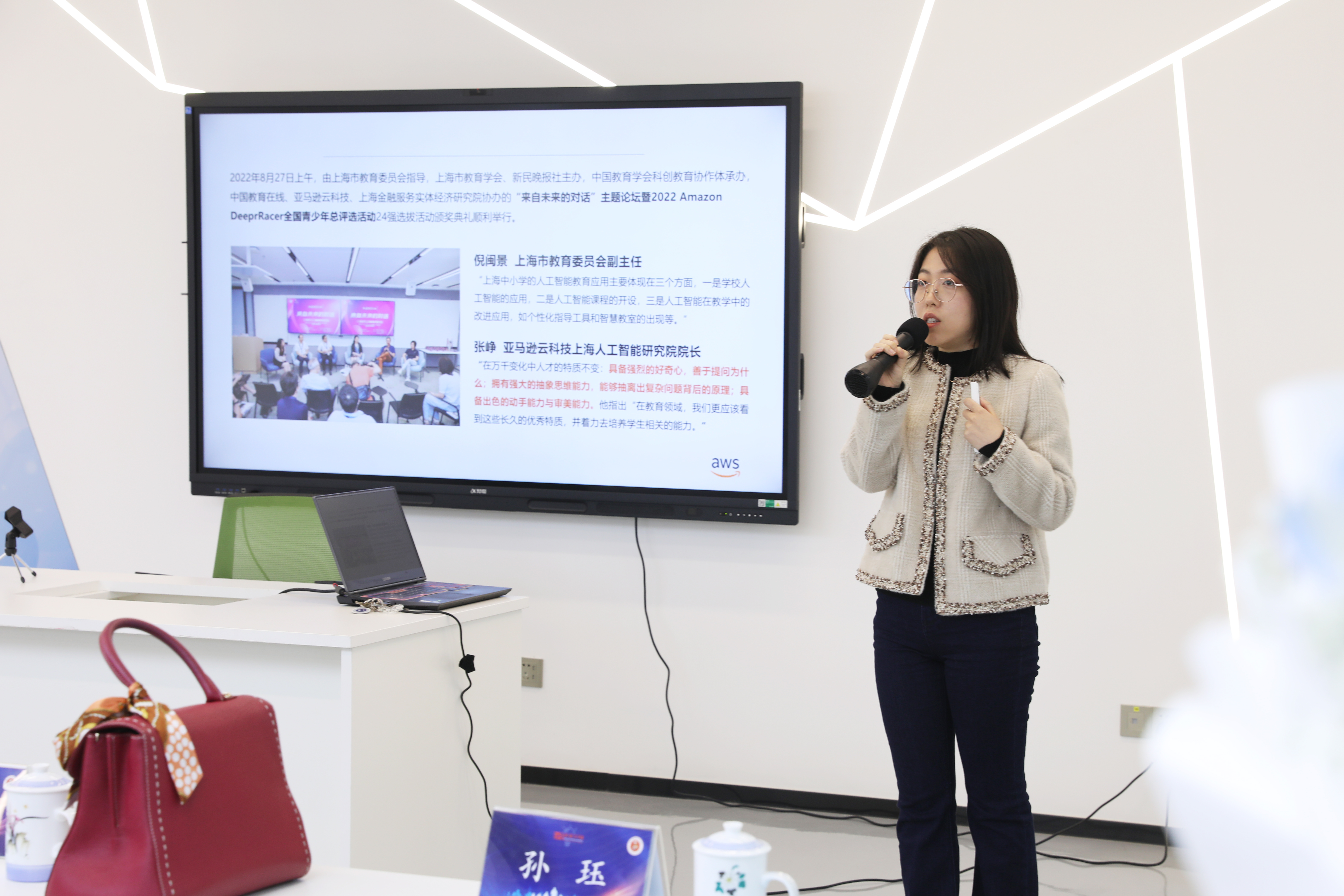 (龙雨做题为“亚马逊云科技如何赋能小学人工智能教育”的主旨演讲)