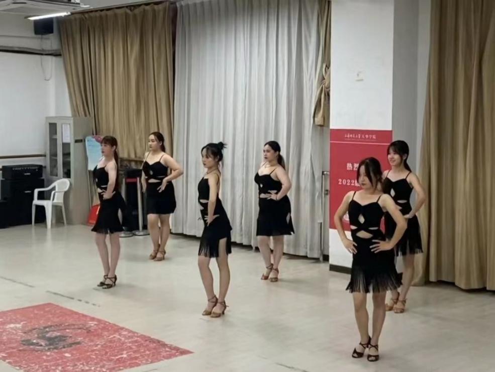 备赛期间,蔡筱烨老师组织运动员们利用课余时间投入训练,用心揣摩体会每个细节,力求完美演绎每个动作,反复参照示范视频纠正动作,确保整个团队动作规范、整齐划一。比赛时,队员们身着黑色流苏裙赛服,脚踩细高跟拉丁鞋,将拉丁的风格和魅力体现得淋漓尽致。规定动作6人恰恰恰看重整体编排能力,每一次队形变换、每一组定格动作都蕴藏着大家细心的琢磨。队员们经过反复的细节排练与磨合,以热情欢快的节奏与舞姿展现了天华学子团结协作、昂扬向上的精神风貌。