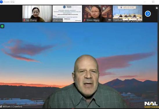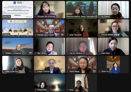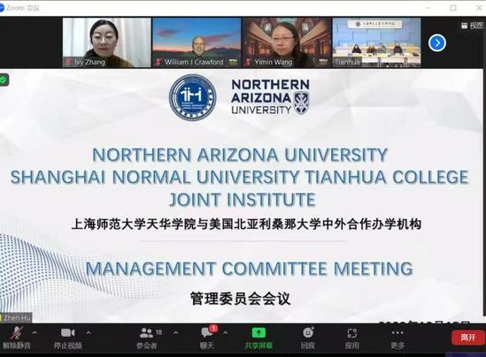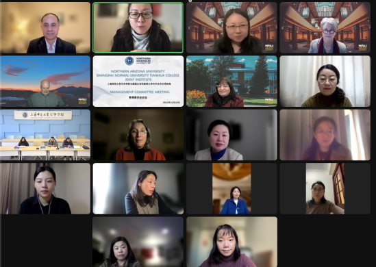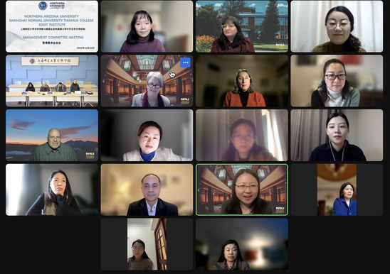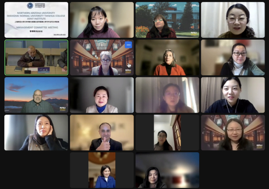 2022年12月15日北京时间上午8:15(美国时间12月14日下午17:15),上海师范大学天华学院与美国北亚利桑那大学以线上线下同步的形式,召开两校中外合作办学机构北亚利桑那学院联合管理委员会扩大会议,成立了天华学院北亚学院教学监督委员会,明确了中外合作办学项目联络和工作流程,为有序推进学前教育、小学教育两个中外合作办学专业的教育教学工作,奠定了基础。