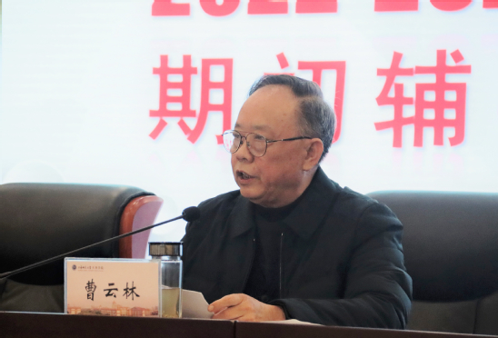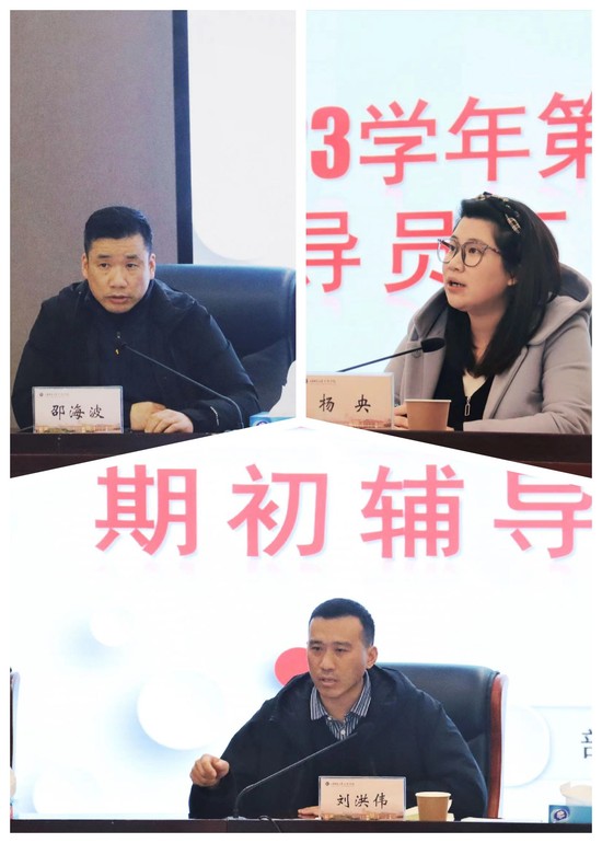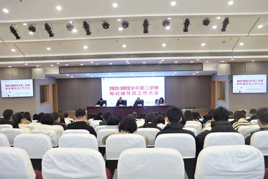 为做好2023年春季学期开学准备工作,提高学生管理水平,全面推动辅导员队伍建设,2023年2月24日下午,学保处组织召开新学期辅导员工作会议。校党委副书记、学保处处长曹云林,学保处副处长刘洪伟、邵海波,学保处副处长兼校团委书记杨央,以及各二级学院党总支正副书记与全体正副辅导员参加会议。会议由曹云林主持。