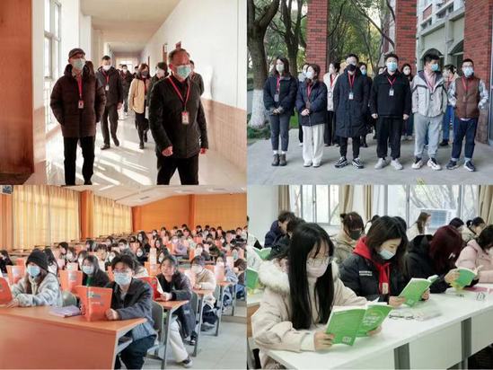 2月27日早上7:20,21、22级学生迎来了新学期第一节早自习。4000余名学生在日华楼教室进行《天华教你学英语》视频学习,正副辅导员全程跟班,班助理协助管理,确保高标准、严要求地抓好视频学习工作。校党委副书记、学保处处长曹云林率领学保处人员、各学院总支书记巡查自习情况,各班出勤率高,学生精神面貌好,学习氛围浓厚。