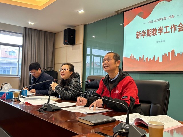 副校长吴国兴围绕人事师资介绍了本学期的工作重点。本学期学校将持续推进教师思想政治及师德师风建设,开展教师思想建设三个一活动,继续探索和实践师德师风建设的理念和方法;推进骨干教师专项工作建立,完成新一轮教学名师评选;招聘新教师,加强师资队伍建设;通过“名师工作坊”“博士沙龙”“午间课堂”“教学竞赛”等形式落实教师学历培养、培育和评价考核。
