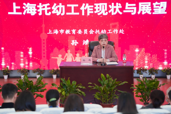 上海市教委托幼工作处处长孙鸿首先作“上海托幼工作现状与展望”主题报告,报告分析了上海学前教育发展的现状以及当前上海学前教育面临的挑战和机遇,并从学前教育资源配置、数字化转型赋能学前教育、建设高质量高水平保教队伍等方面提出了下一阶段上海学前教育的发展思路,希望能与在座园长们一起努力,让每个孩子健康快乐成长。
