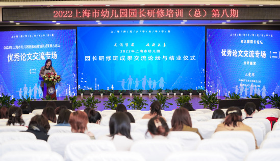 结业仪式上,与会人员一起观看了2022年上海市幼儿园园长研修巡礼片,回顾了本期研修班的学习之旅。今年的研修班继续遵循增强实操三要,三对标,三强化要求,突出幼儿园园长树立岗位工作的培养。研修内涵不断丰富,围绕《幼儿园园长专业标准》,规划园所发展,优化内部管理,营造育人文化。研修项目关注到每一位参培园长,园长们分享自身学习经验,激发教学的热情,并将经验用于实践,不断提升自己的组织能力、管理能力,积极投身到上海学前教育的高质量发展的浪潮之中。