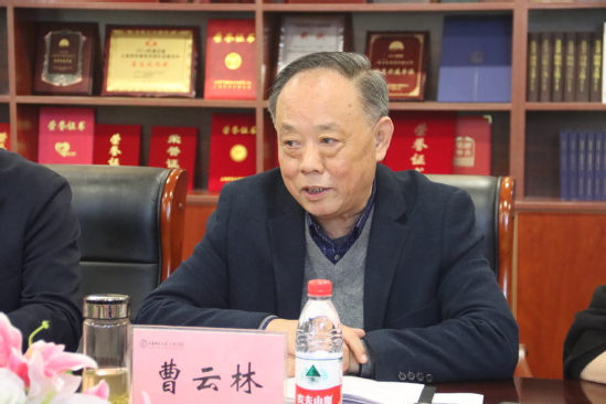 (党委副书记、学保处处长曹云林向中心一行介绍我校基本概况与资助工作情况)