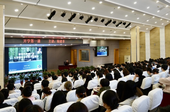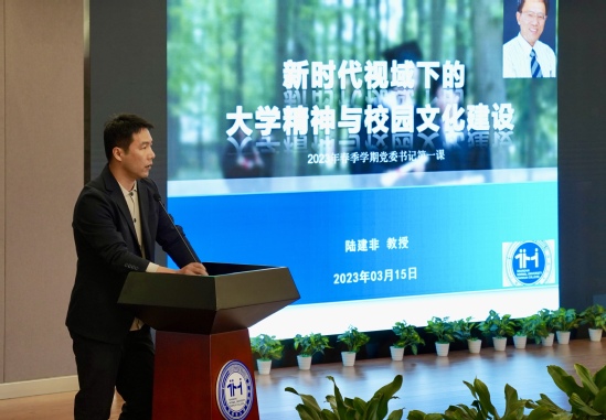 3月15日下午,党委书记陆建非以《新时代视域下的大学精神与校园文化建设》为题为我校师生们讲授2023春季学期“开学第一课”。200余名师生现场聆听报告。报告会由学保处常务副处长包静波主持。