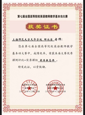 2 | 邹冰洁 | 国家级 一等奖 最佳教态奖 | |