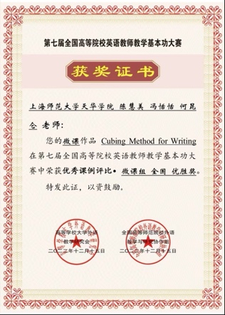 2023年3月19日,第七届全国高等院校英语教师教学基本功大赛圆满落幕。初等教育学院七位教师在本次比赛中共斩获国家级一等奖三项、二等奖一项、优胜奖一项,获奖数量及奖项含金量均创历史新高。其中,实录课组胡玥老师和邹冰洁老师均获国家级一等奖;微课组卜迅老师获国家级一等奖,胡雅楠老师获国家级二等奖,陈慧美、冯恬恬、何昆仑团队获国家级优胜奖。