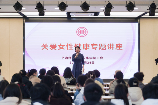 3月24日下午,学校工会在图书馆四楼举办“关爱女性健康”专题知识讲座,特邀中国福利会国际和平妇幼保健院副主任医师、上海市妇女病康复专业委员会会员、上海市中医药学会妇科分会委员谢军医生担任主讲嘉宾。来自各部门、各二级学院的百余名女性师生代表参加讲座。讲座由工会常务副主席曹卫主持。