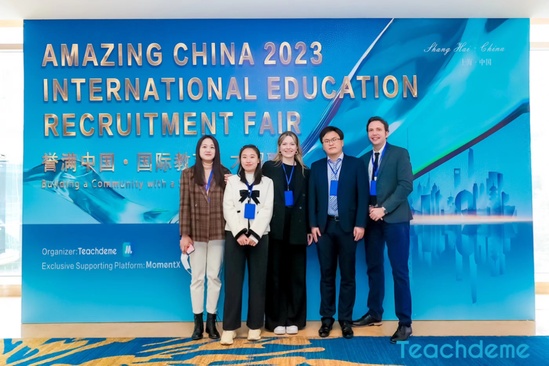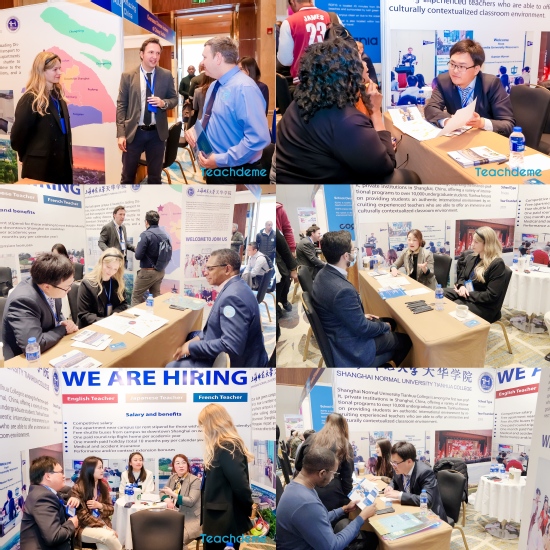 2023年3月26日,由Teachdeme主办的2023年誉满中国国际教育人才招聘会在上海浦东喜来登酒店顺利举行。我校共6名教师参与招聘会,分别是国际交流处副处长张云、处长助理赵旋、中教教师潘杰、李甜甜,外教教师Sterling Lyn Voortmeyer 、Philpott Paul。