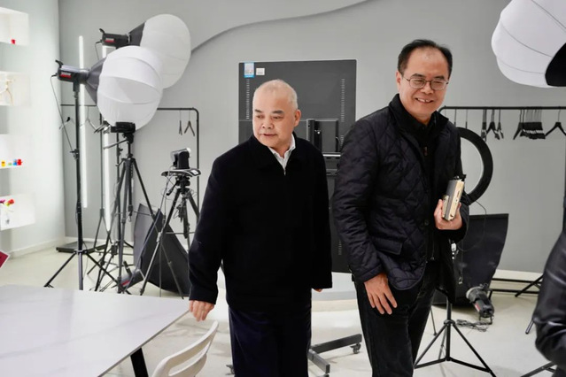 在上海师范大学天华学院艺术设计学院常务副院长徐子卿带领下,校长叶才福、副校长王友根、党委副书记许岳、天下秀教育总经理吴昊、天下秀教育教研总监杨羽、天下秀教育运营总监李莹、天下秀教育高级销售经理曹月婷及天下秀教育院校合作经理饶晴丽一起参观校内实训基地。参观中,天下秀直播实训基地的完善建设及后续运营使用得到了校领导高度评价与指导。