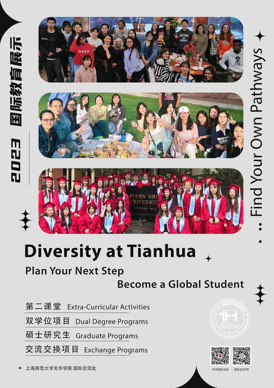 为进一步保持国际化发展初心,提高学生国际交往能力,营造浓厚的国际化氛围,国际交流处于2023年4月19日,在小桥有料集市成功举办了2023年国际教育展示专场活动。本次国际教育路演活动以“Diversity at Tianhua- Plan Your Next Step, Become a Global Student”(多样校园——规划未来,培养国际视野)为主题,展示了我校多元的校园国际化氛围及多渠道的留学、研究生、交流交换项目。