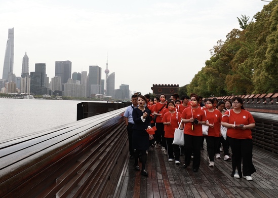 徐捷老师带领上海师范大学天华学院师生,沿着习近平总书记的足迹,重温习总书记的殷殷嘱托。她深入讲解了“滨江工业带”的百年变迁,如何实现了从“工业锈带”到“生活秀带”的华丽转身,生动讲解了习近平总书记提出的“人民城市人民建,人民城市为人民”的理念。