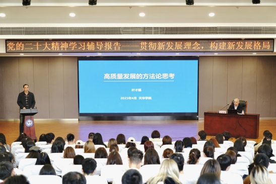 4月26日下午,学校党委在晖华楼报告厅举行学习贯彻习近平新时代中国特色社会主义思想主题教育辅导报告,党委副书记、校长叶才福讲授《高质量发展解析》专题党课。200余名师生代表参加报告,党办主任、宣传部长齐砚奎主持。