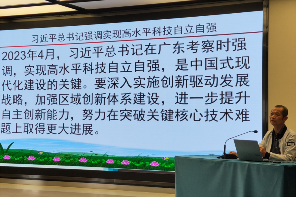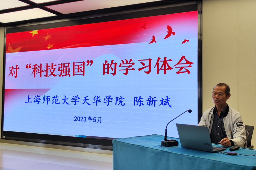 陈新斌通过分享自己的学习体会,使大家了解到中国现代科技事业的发展史和社会主义现代化建设的教育科技人才战略。中国现代科技事业起步较晚,20世纪前半叶并没有为科技事业建立牢固的基础。中华人民共和国成立之后,由于党和政府的重视,我国科技事业以前所未有的步调快速发展。习近平总书记提出了“实施科教兴国战略,强化现代化建设人才支撑”这一新观点。同时习总书记明确提出了“教育、科技、人才是全面建设社会主义现代化国家的基础性、战略性支撑”新论断。