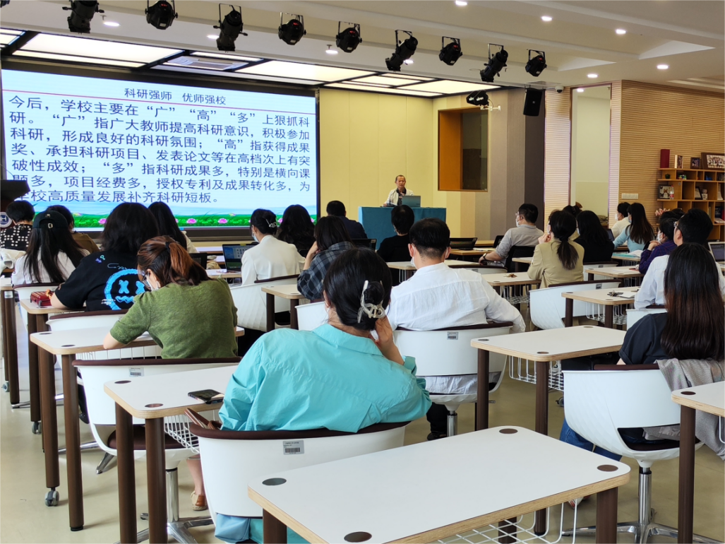 陈新斌指出,开展学术研究要考虑国家战略、城市发展、学校情况、个人兴趣、学科前沿、学科交叉、社会热点、瓶颈难点等因素。 今后,学校主要在“广”“高”“多”上狠抓科研。“广”指广大教师提高科研意识,积极参加科研,形成良好的科研氛围;“高”指获得成果奖、承担科研项目、发表论文等在高档次上有突破性成效;“多”指科研成果多,特别是横向课题多,项目经费多,授权专利及成果转化多,为学校高质量发展补齐科研短板。