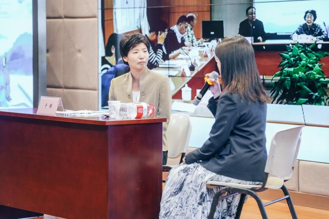 场景三:对话于漪。青年教师柴豪頔和于漪先生进行教学对话,交流经验,延续了“教育即生活”的教育理念,并践行于她的实际教学中。于先生在教学中最深切的体会就是“既教文,又教人”,也让在座的教师体会到作为教育工作者所肩负的责任,那就是眼中有学生,让教育回归生活,德智融合。即将成为未来一线教育者的学生也在这一幕中感悟到了教育的内涵。希望教师努力践行“不忘教育初心、牢记育人使命”的职责,争做一名涵养道德教师,更要争做于漪式好教师。
