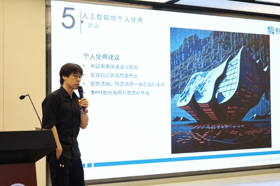 本次论坛中,新湖期货的数据管理负责人刘拯就AI技术在期货行业的实际应用做了综合的介绍与分析。他强调了现有的语言相关人工智能技术,在当前期货企业数字化转型战略中的重要作用,同时也展望了在金融衍生品量化投资以及风险管控的前景。在演讲的最后,他鼓励年轻学生在面对新的技术革新时,需要积极接触与思考,在技术与生产方式高速迭代的时代,找准自己在这场数字浪潮中的位置。