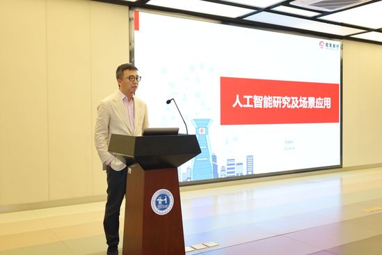 叶校长致辞过后,第一位主讲嘉宾,招商银行上海分行技术总管、招商银行上海分行信息技术部总经理助理、上海分行零售金融科技、数字化转型负责人王皓就人工智能的发展及研究方向还有技术流派进行全面的介绍与分析。同时,他还对招商银行人工智能应用的整体概览进行介绍,就金融场景下的典型应用进行了重点阐述,引起了与会嘉宾的热情讨论。最后部分分享了ChatGPT应用场景的四个视角,强调GPT在金融财富投研、智能客服、营销运营等方方面面将提供全新的创新动力从而带来颠覆式的服务模式升级。